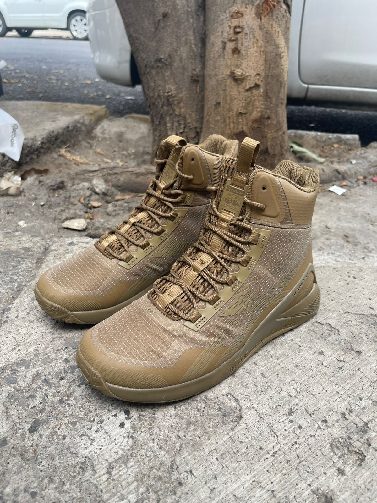 Las Reebok Nano X1 Adventure Tactical en color Coyote son el calzado definitivo para superar cualquier reto, fusionando la estabilidad cross-training de las Nano con una durabilidad de nivel táctico. Diseñadas en un robusto tono arena (Coyote), su silueta de bota alta con cremallera lateral ofrece una protección superior y un ajuste rápido, ideal tanto para entrenamientos intensos al aire libre como para jornadas laborales exigentes. La entresuela con tecnología Floatride Energy Foam garantiza una amortiguación ligera y reactiva, mientras que la suela exterior con tacos elevados proporciona una tracción inigualable en superficies variadas, haciendo de esta zapatilla la elección perfecta para la aventura diaria o la sesión más extrema.